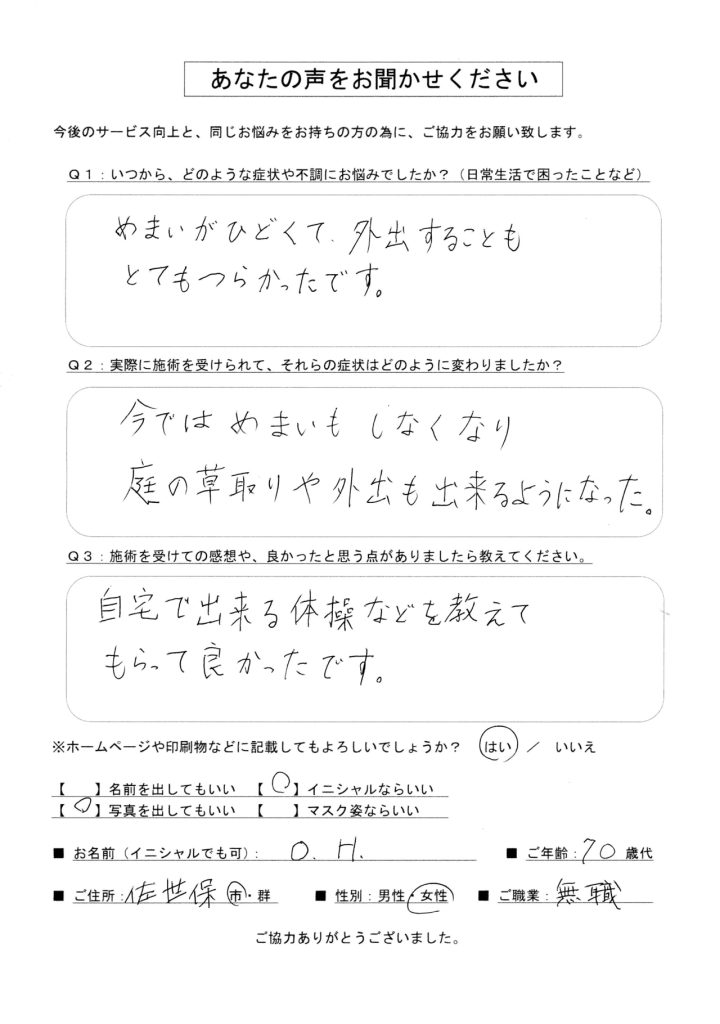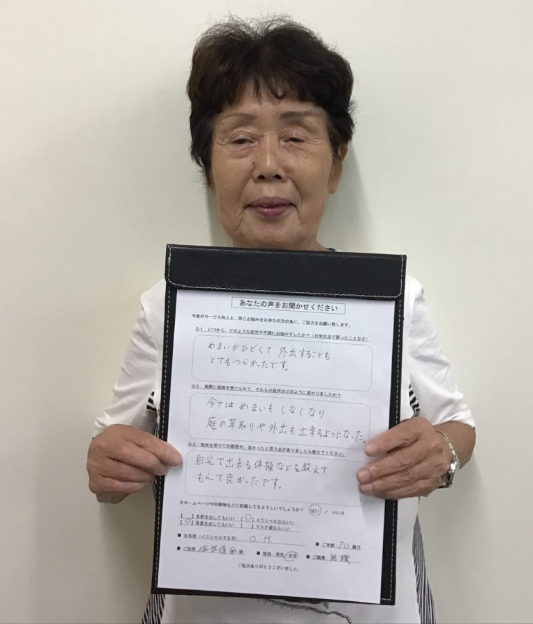 今ではめまいもしなくなり草取りや外出が楽になりました!